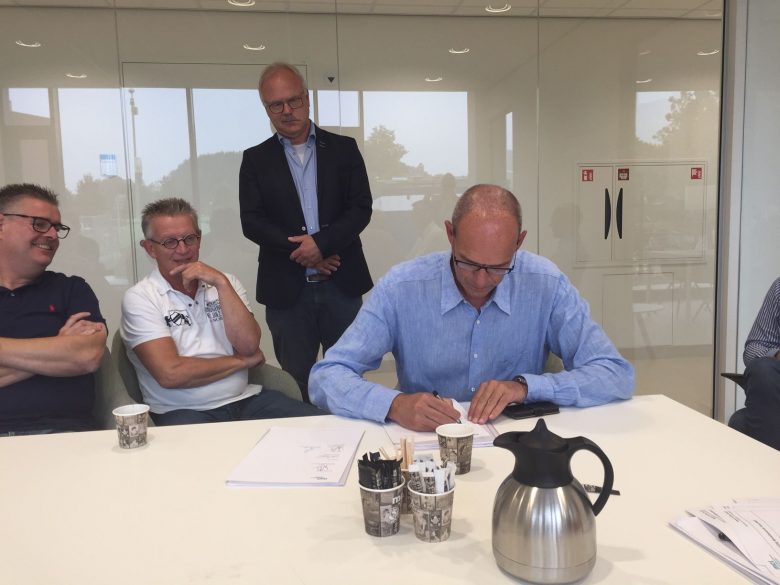 Directielid de heer W. Lenglet ondertekent het Proces-verbaal van oplevering nieuwbouw Spoedeisende Hulp