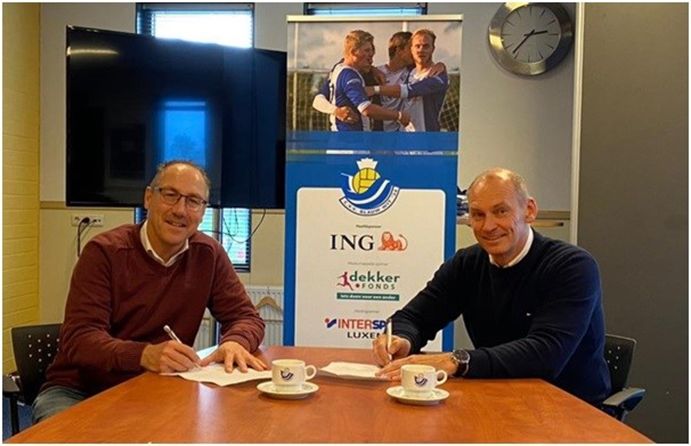 Op de foto ondertekent Gerhard van der Zee van ITBB (rechts) het contract in het bijzijn van Peter Dekker van Blauw-Wit afdeling Commerciële Zaken.