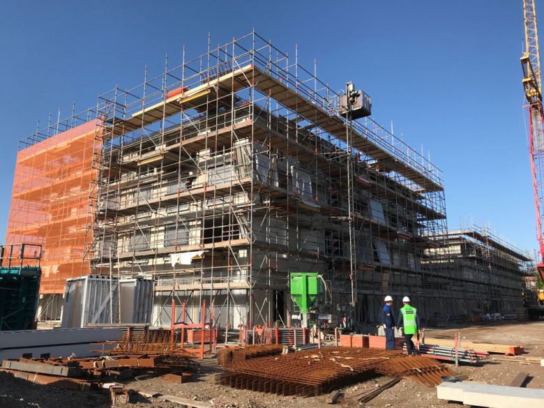 De aardbevingsbestendige nieuwbouw, op het terrein van het voormalige verpleeghuis Innersdijk in Beijum vordert al aardig.